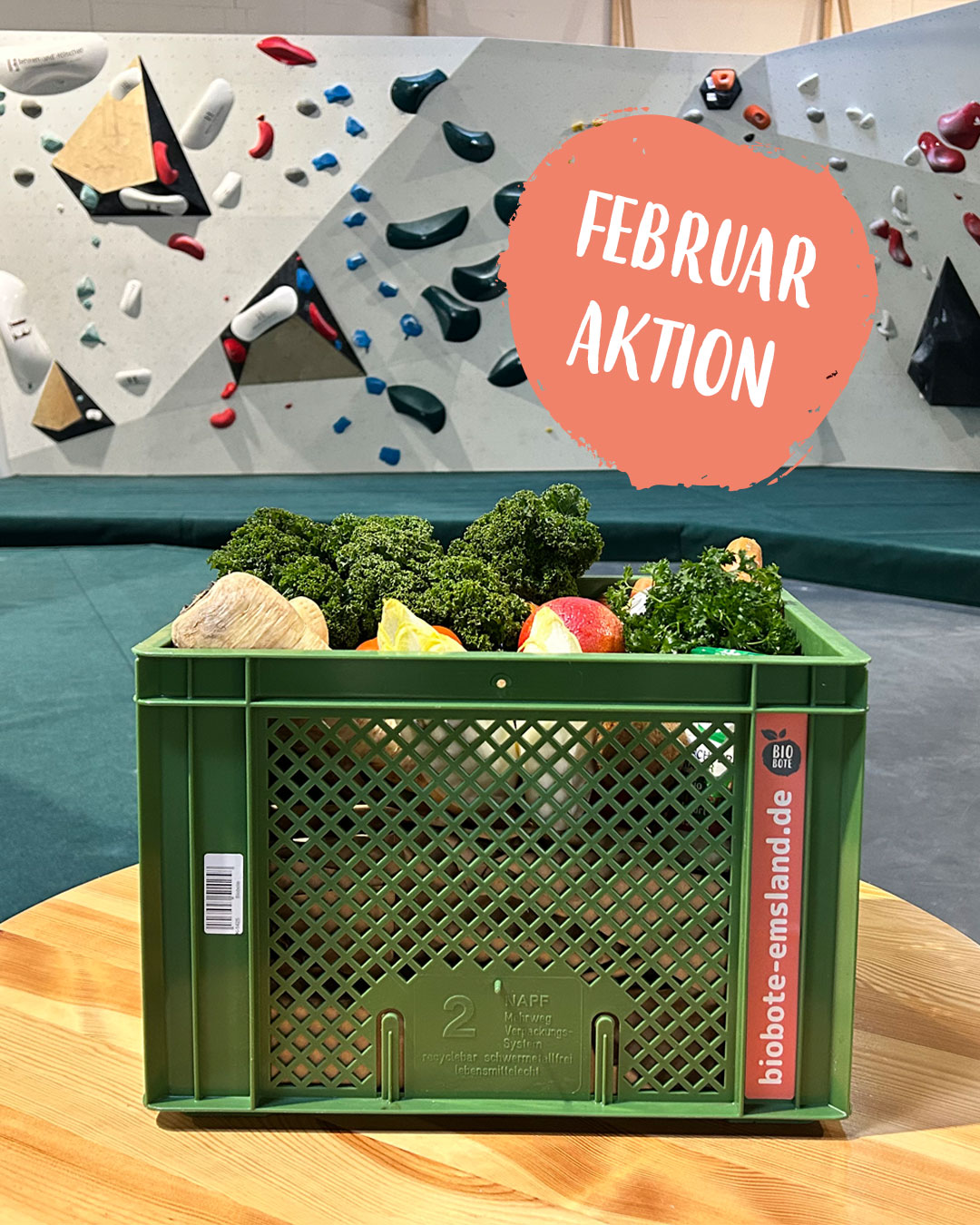 Zusammen mit den Bioboten haben wir eine Aktion gestartet, die dich nicht nur beim Bouldern stärkt, sondern auch zu Hause bestens versorgt. 🥦Informiere dich jetzt!